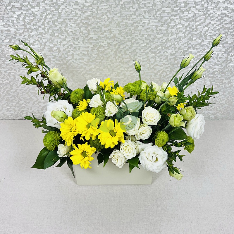 Облако кустовых роз и желтые хризантемы в коробке – такую прелесть можно заказать с доставкой в любой район Котово.